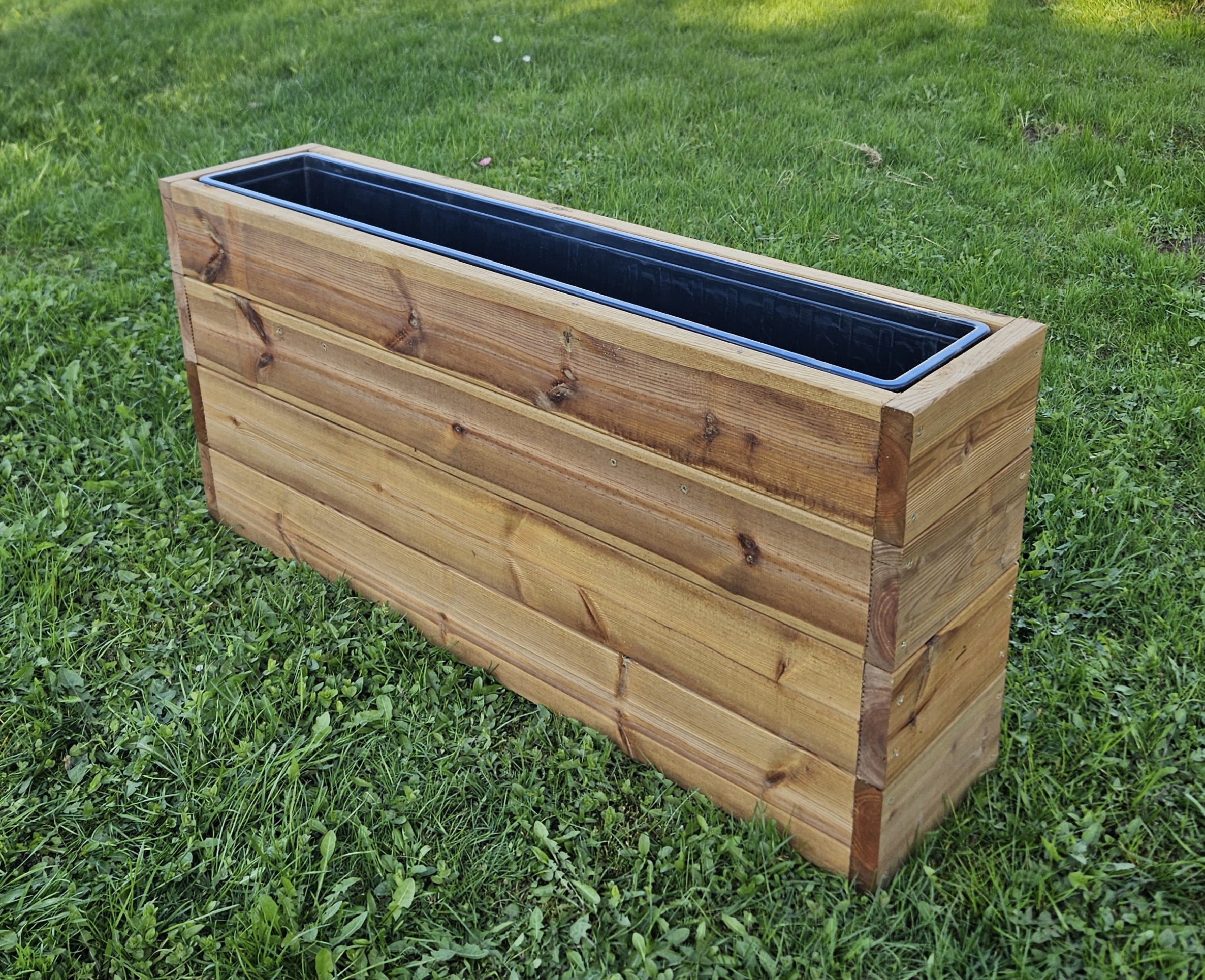 Immutatud terrassilauast taime- lillekasti komplekt, sisaldab plastsisu.