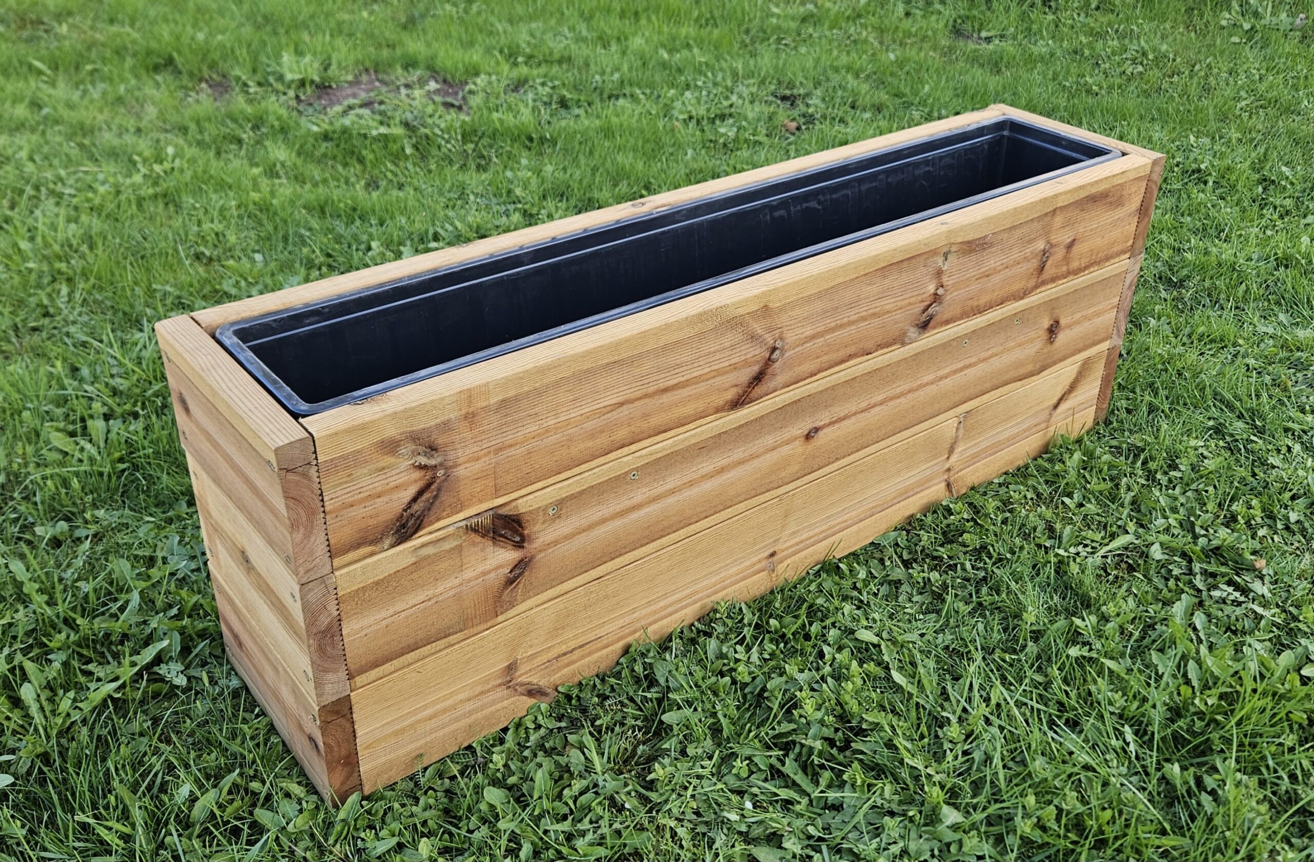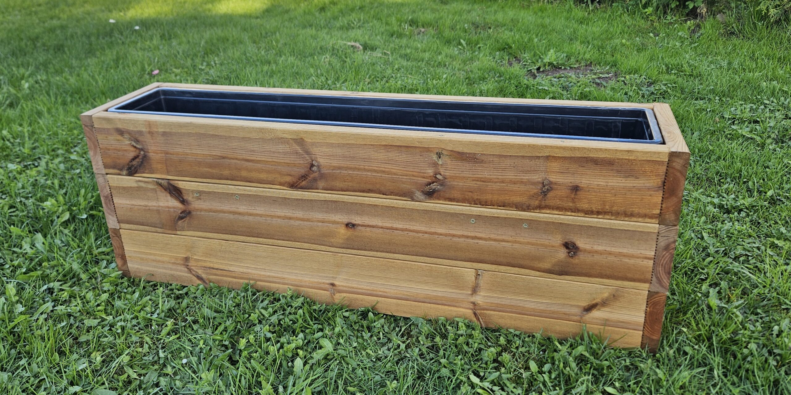 Immutatud terrassilauast taime- lillekasti komplekt, sisaldab plastsisu.