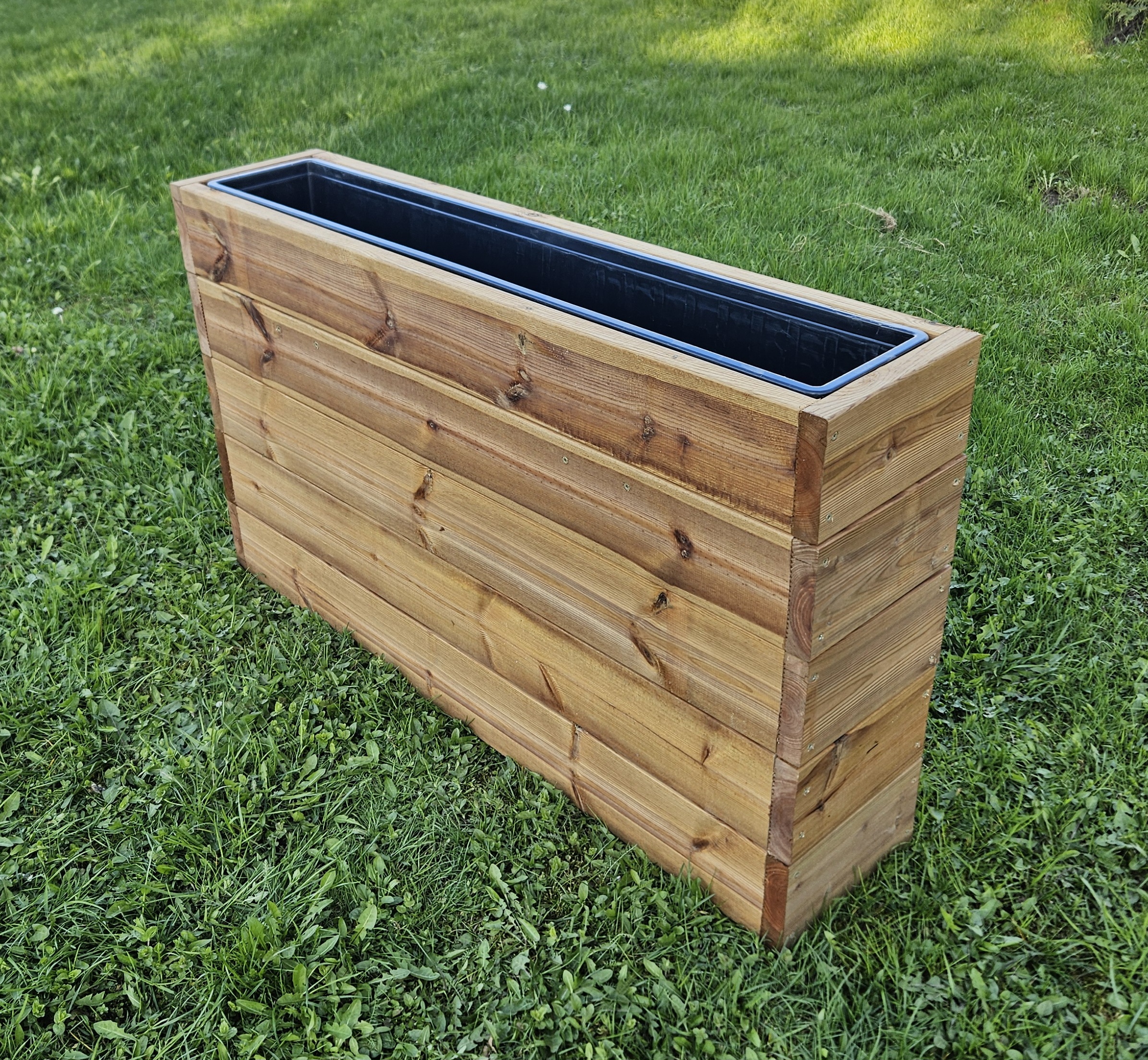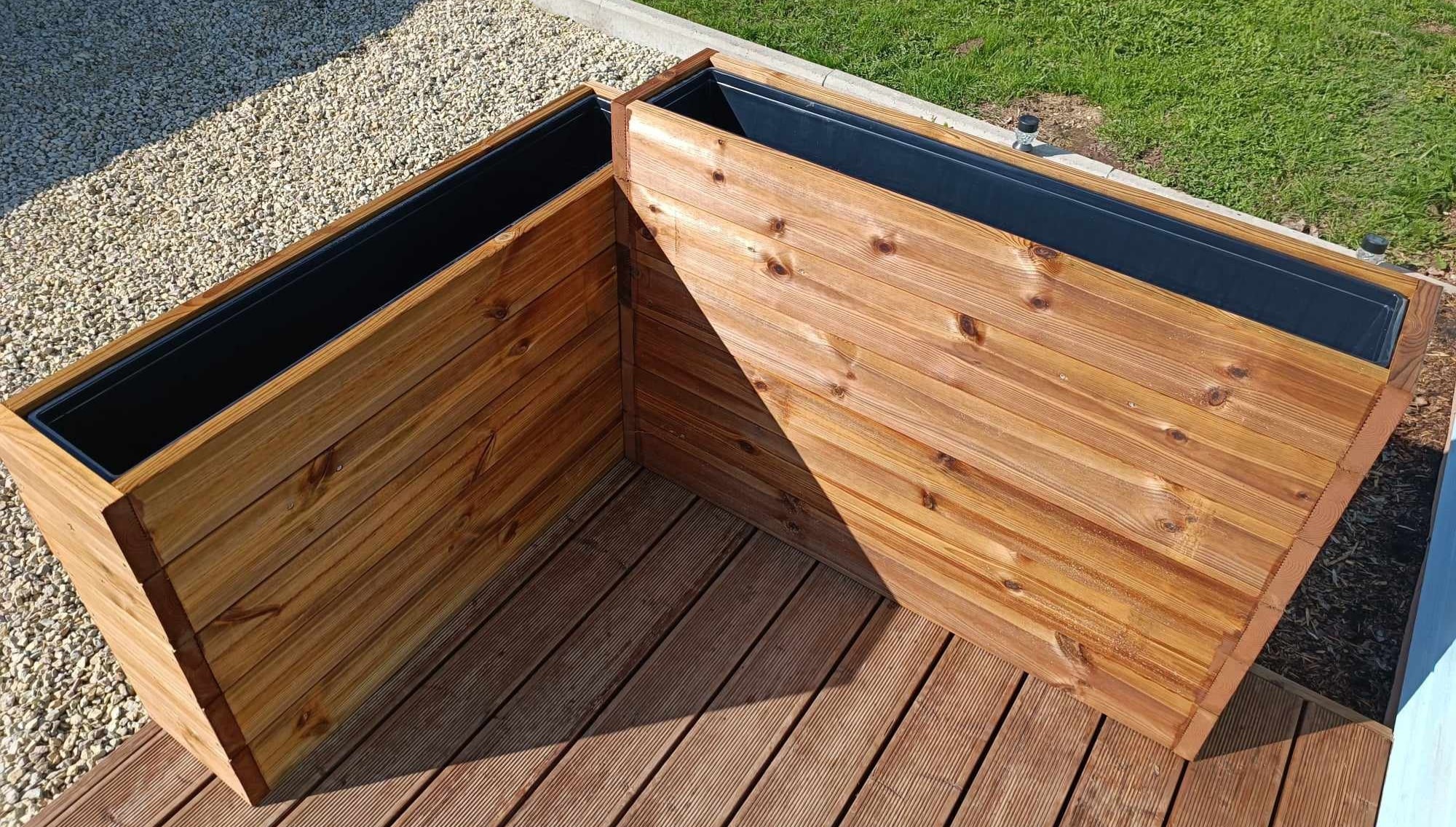 Immutatud terrassilauast taime- lillekasti komplekt, sisaldab plastsisu.