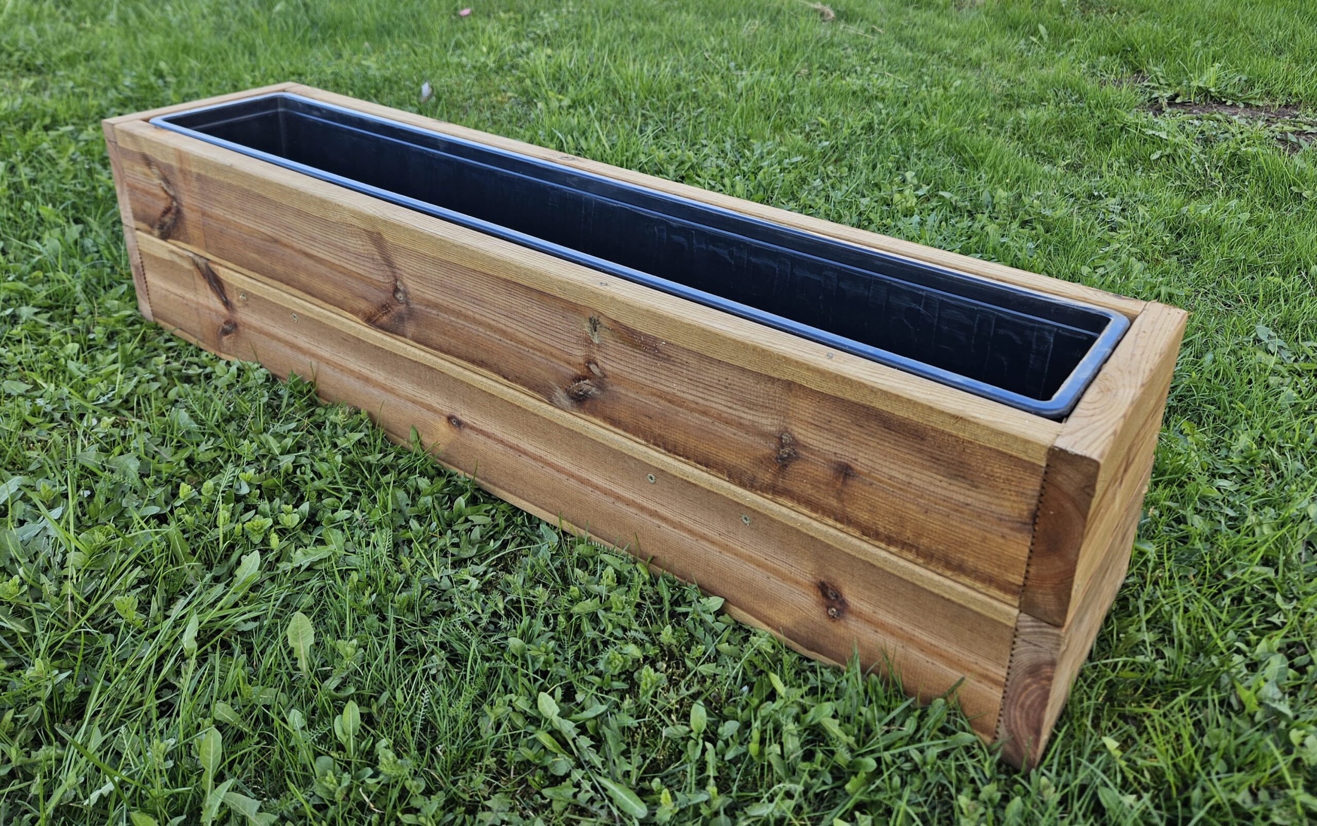 Immutatud terrassilauast taime- lillekasti komplekt, sisaldab plastsisu.